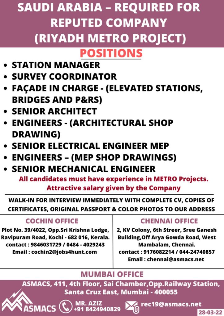 All candidates must have experience in METRO Projects.