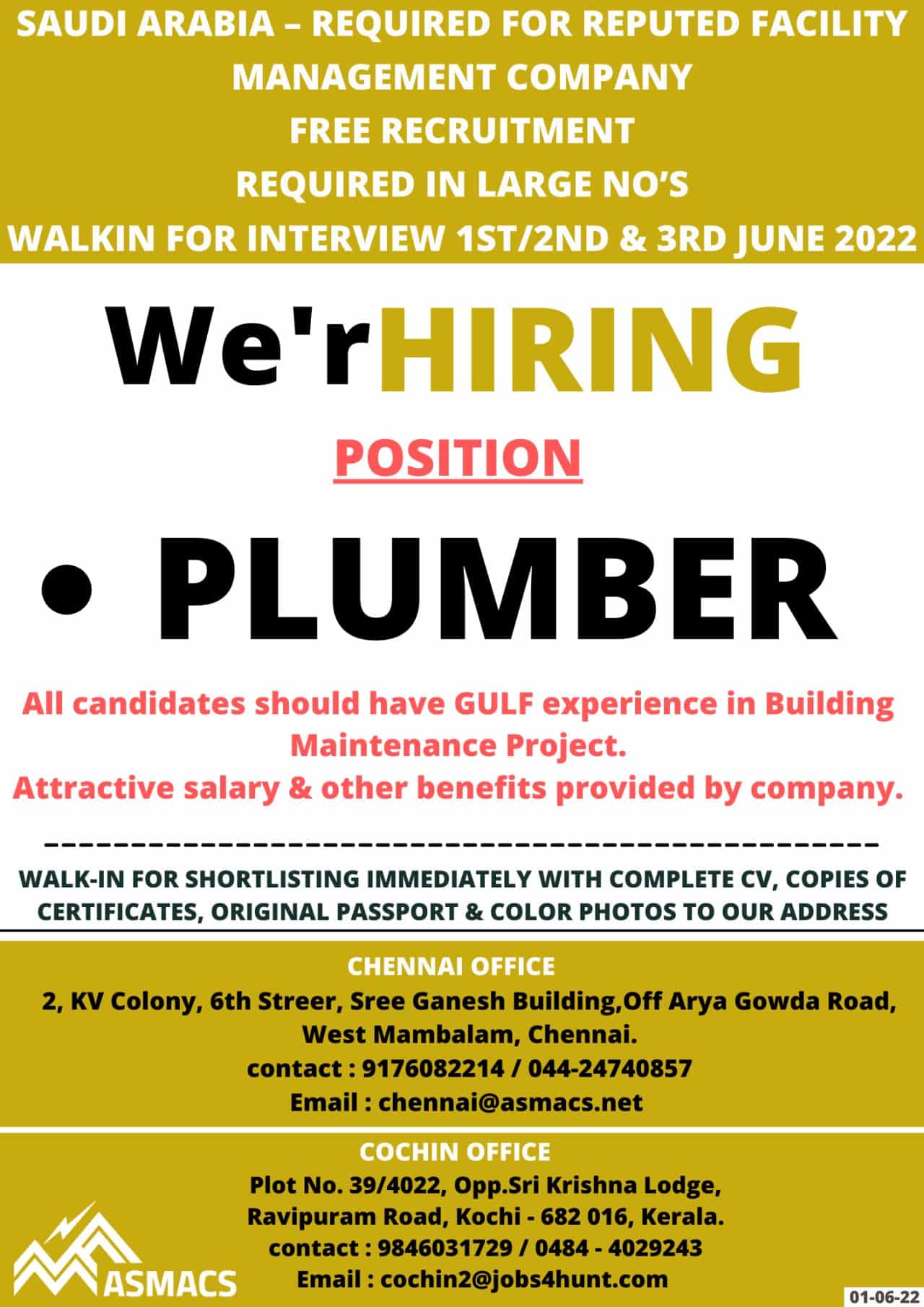 WALKIN FOR INTERVIEW 1ST/2ND & 3RD JUNE 2022
