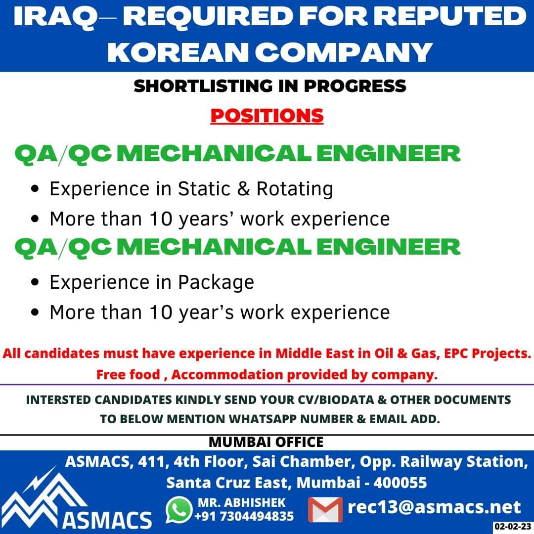 All candidates must have experience in Middle East in Oil & Gas, EPC Projects.