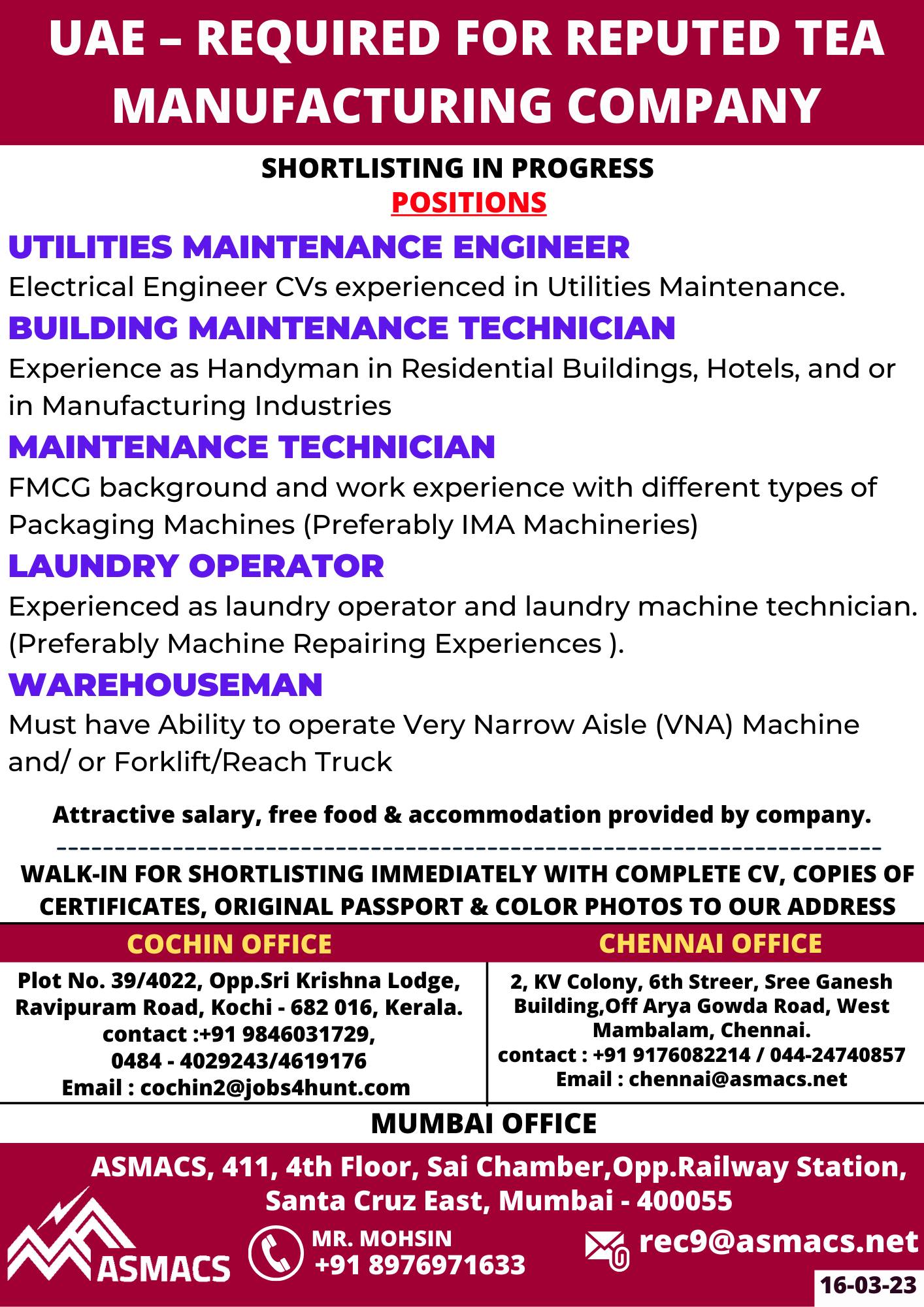 UAE – REQUIRED FOR REPUTED TEA MANUFACTURING COMPANY