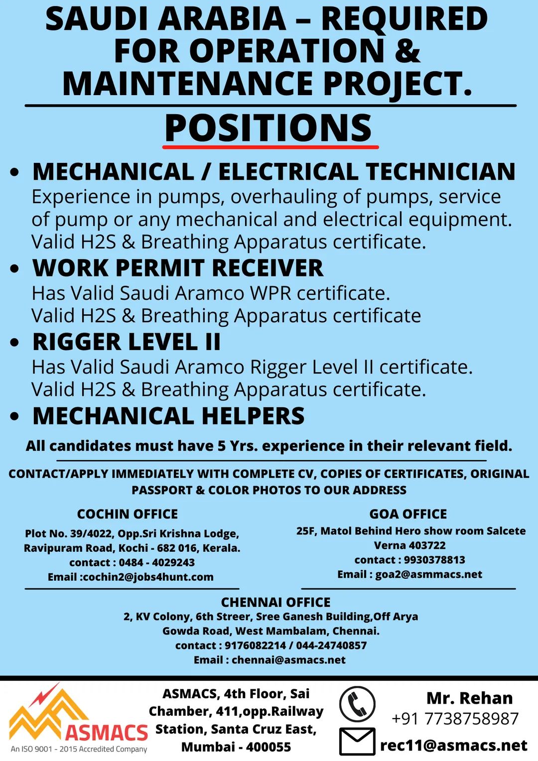 Has Valid Saudi Aramco WPR certificate.