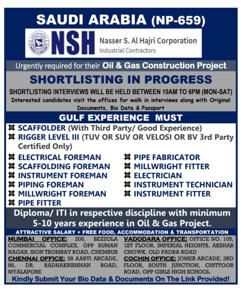 Urgently required for their Oil & Gas Construction Project