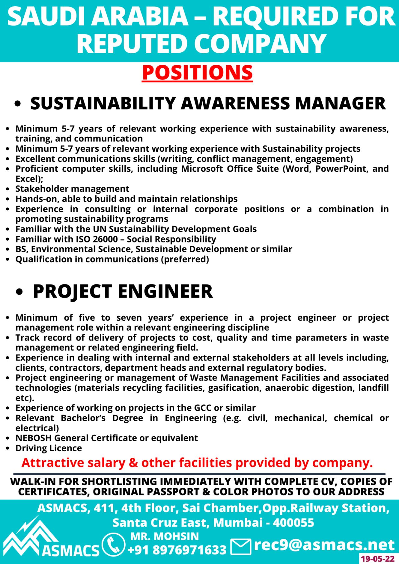 Minimum 5-7 years of relevant working experience with sustainability awareness,