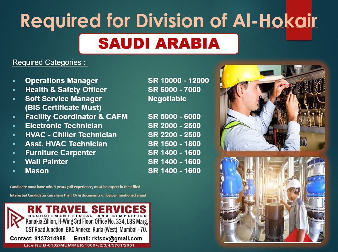 Candidate must have min. 5 years gulf experience, must expert in their filed