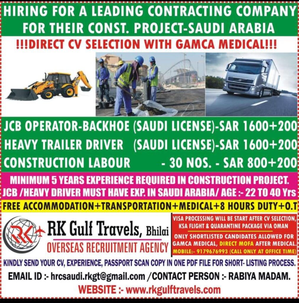 : JCB /HEAVY DRIVER MUST HAVE IN SAUDI ARABIA/ AGE 22 TO ao