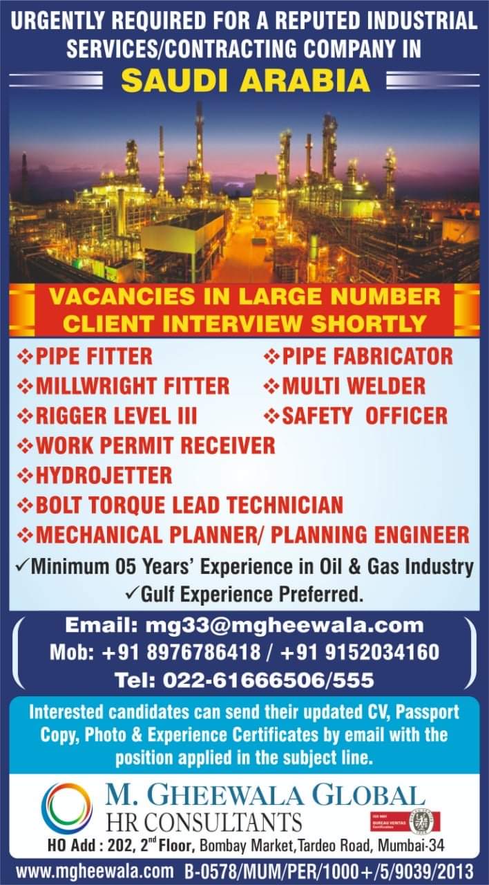 Minimum 05 Years’ Experience in Oil & Gas Industry ‘/Gulf Experience Preferred.