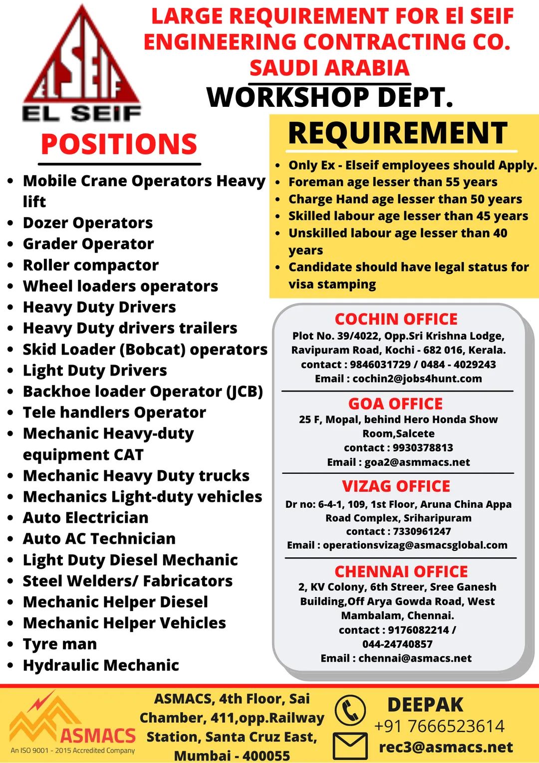 Mobile Crane Operators Heavy • Foreman age lesser than 55 years