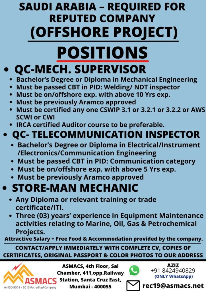 • Must be on/offshore exp. with above 5 Yrs exp.