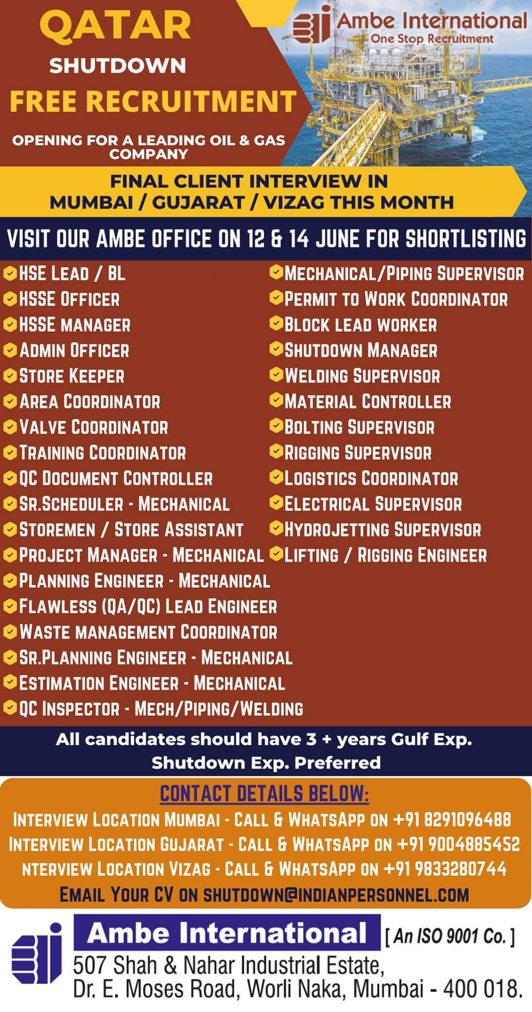 EMAIL YOUR CV ON SHUTDOWN@INDIANPERSONNEL.COM