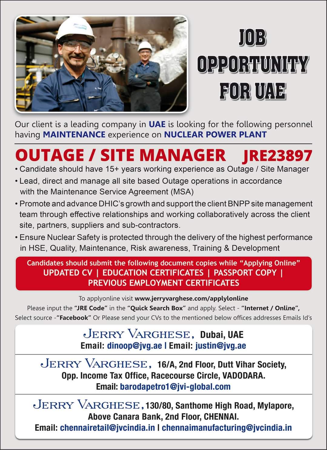• Candidate should have 15+ years working experience as Outage / Site Manager