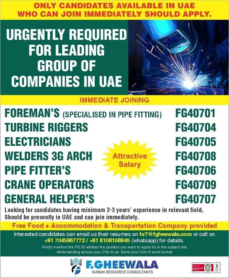 Interested candidates can email us their resumes on hr7@fgheewala.com or call on