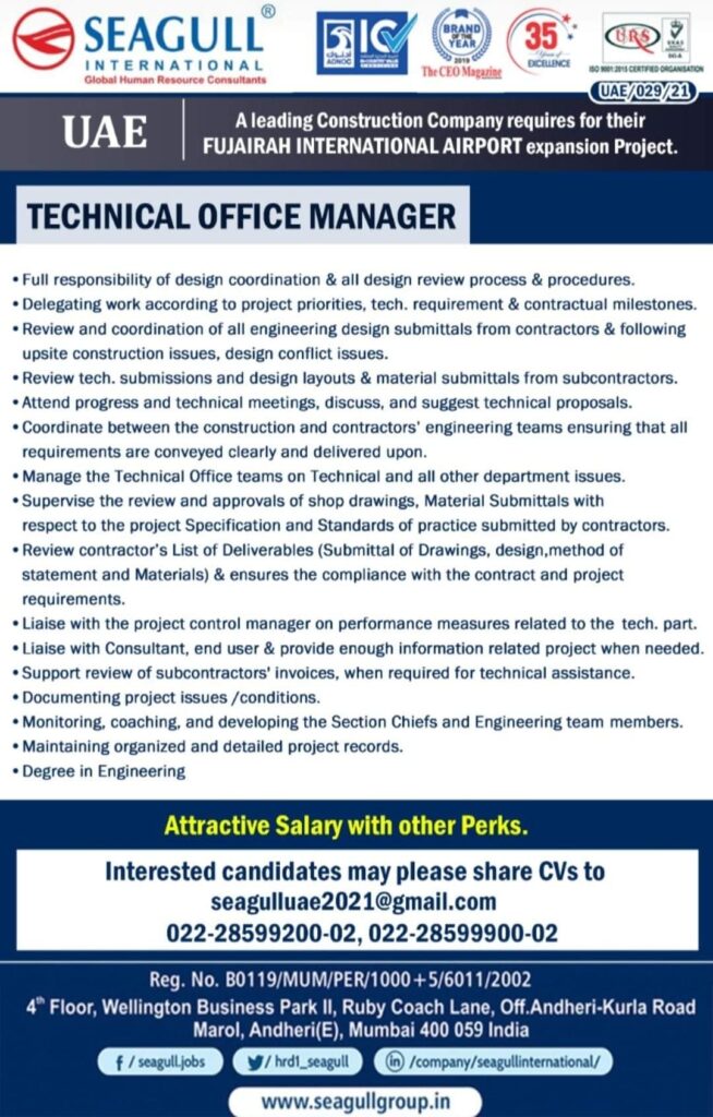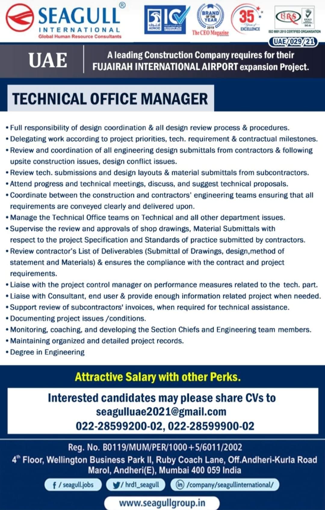 • Liaise with the project control manager on performance measures related to the tech. part.