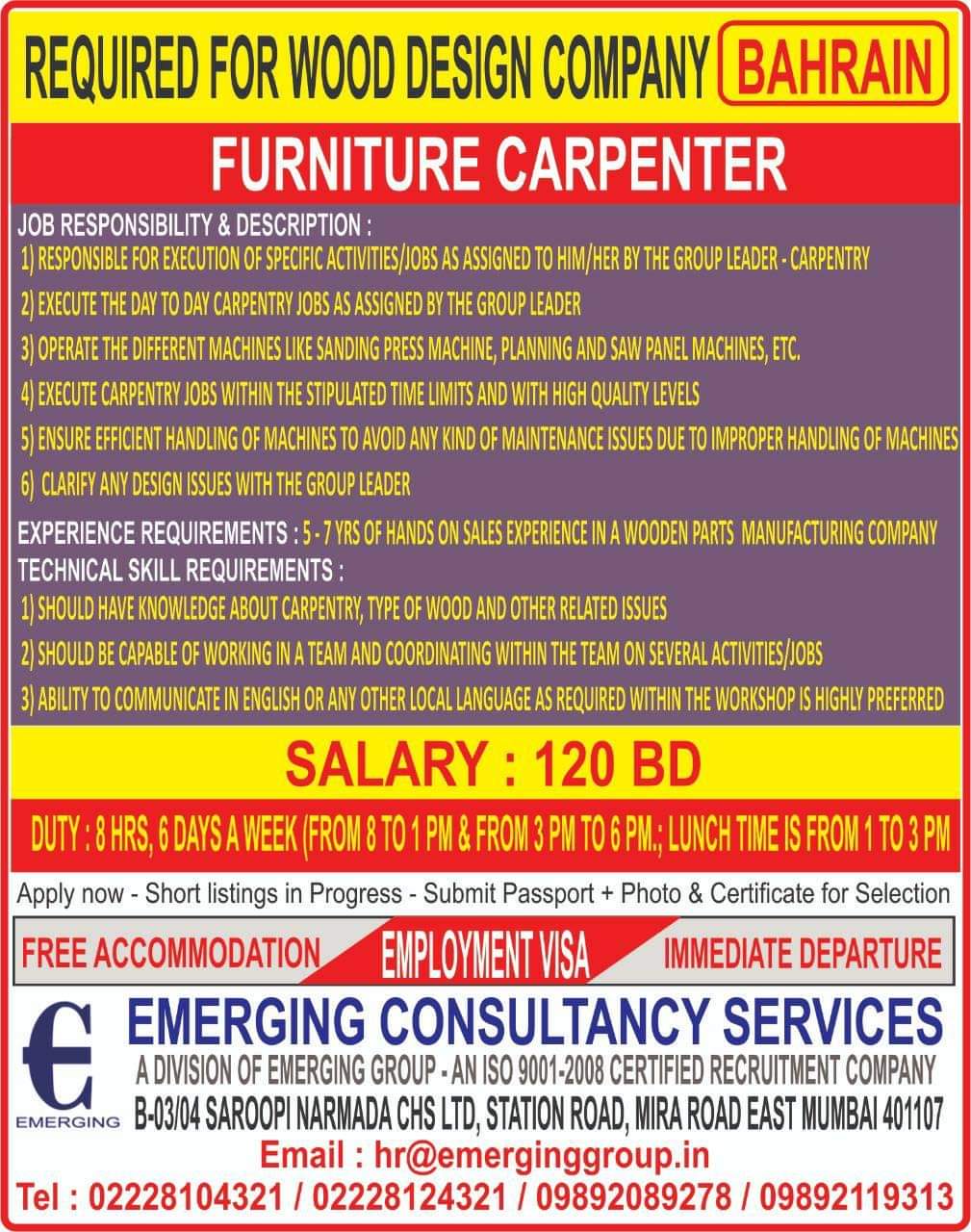 REQUIRED FOR WOOD DESIGN COMPANY BAHRAIN
