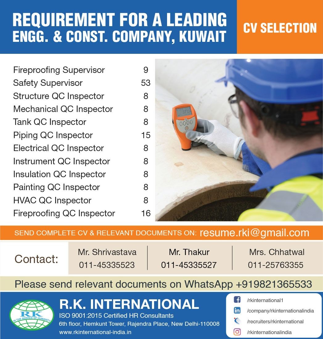 SEND COMPLETE CV & RELEVANT DOCUMENTS ON: resume.rki@gmail.com