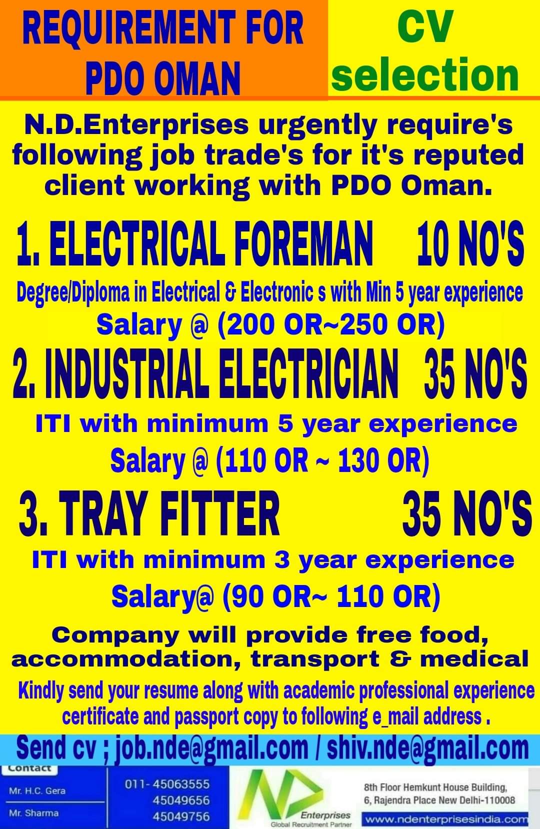 Salary @ (200 OR-250 OR) - INDUSTRIAL ELECTRICIAN 35 NO’S