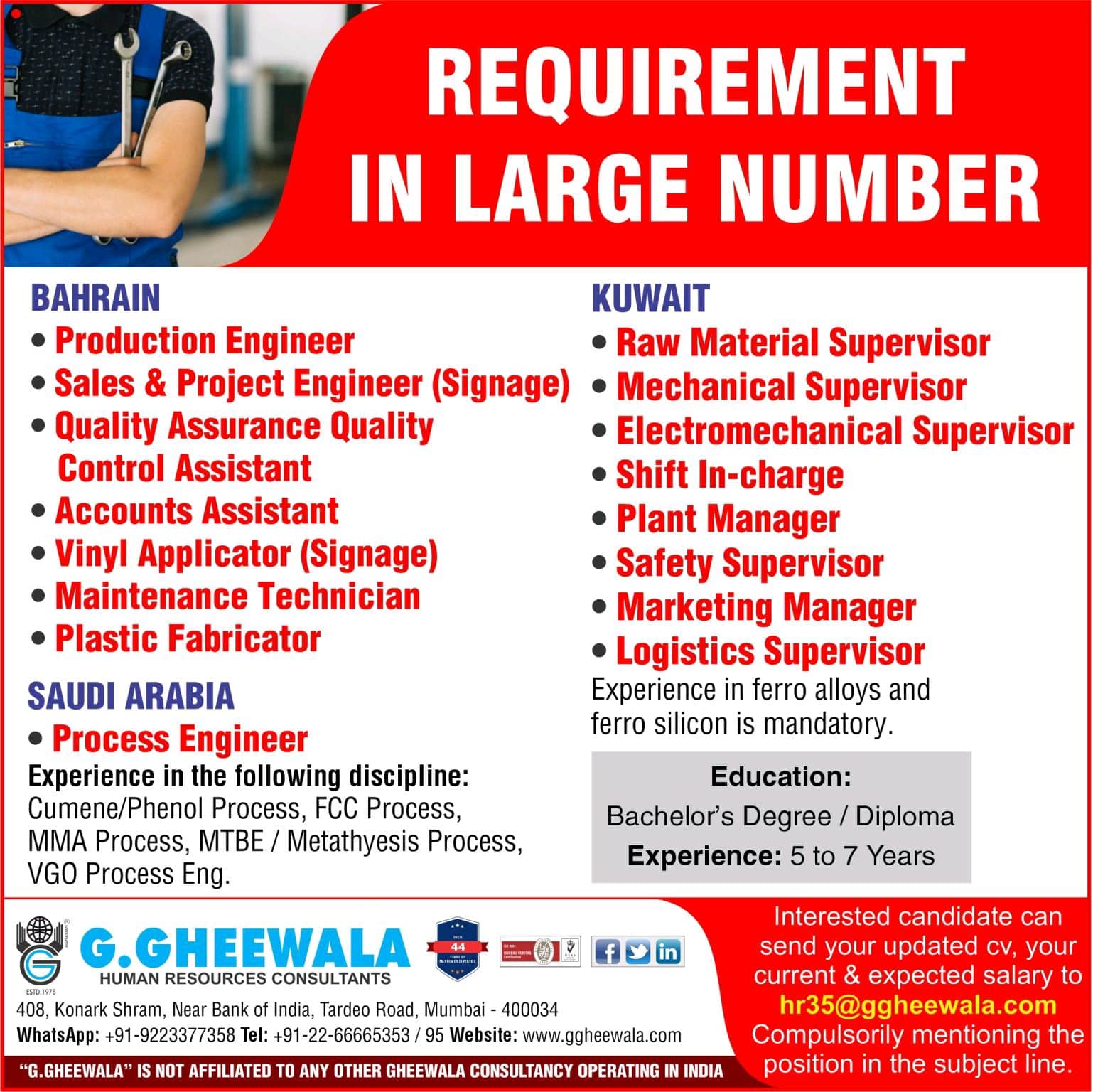 REQUIREMENT IN LARGE NUMBER BAHRAIN