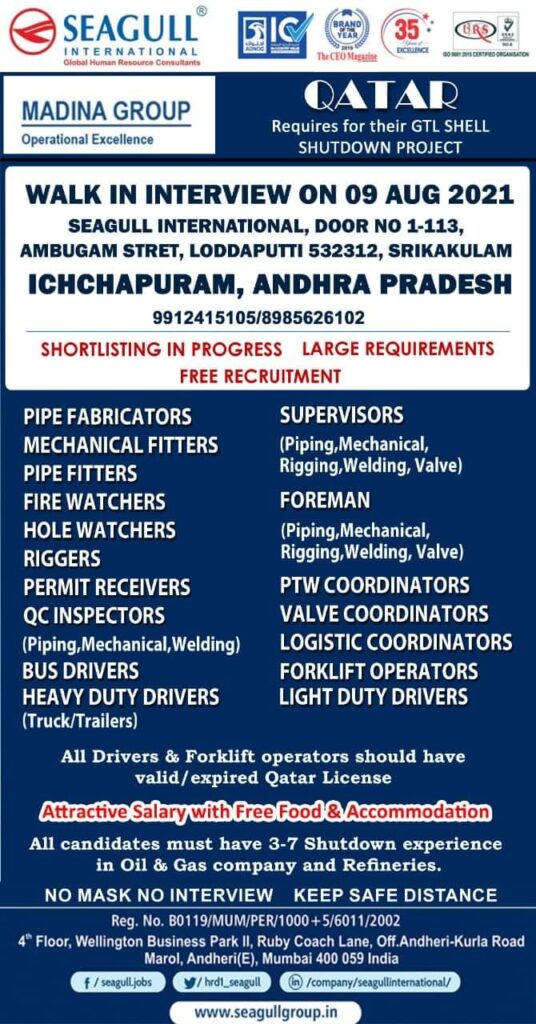 WALK IN INTERVIEW ON 09 AUG 2021