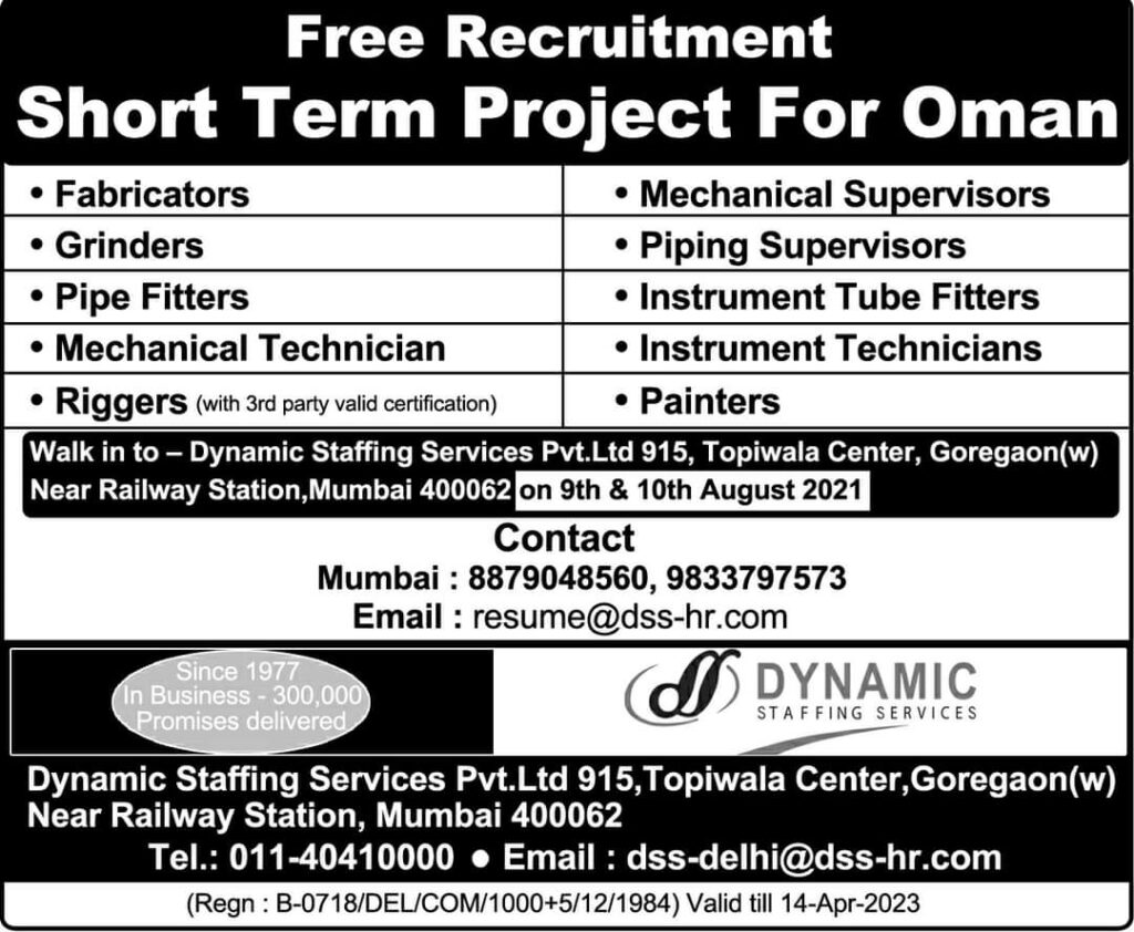 Walk in to – Dynamic Staffing Services Pvt.Ltd 915, Topiwala Center, Goregaon(w)
