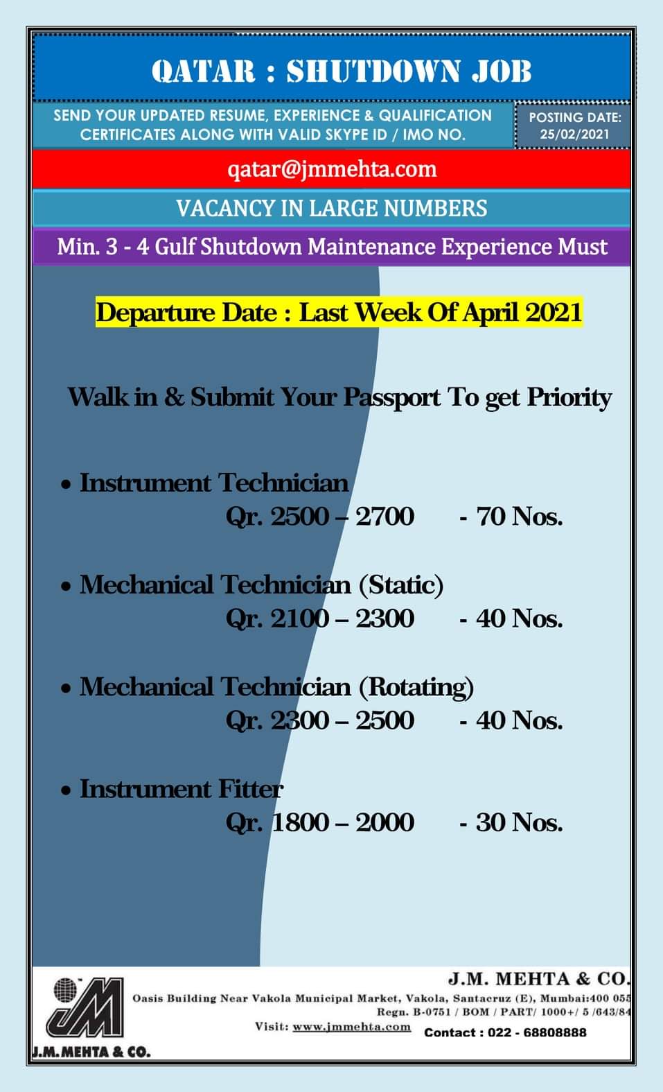 Min. 3 – 4 Gulf Shutdown Maintenance Experience Must