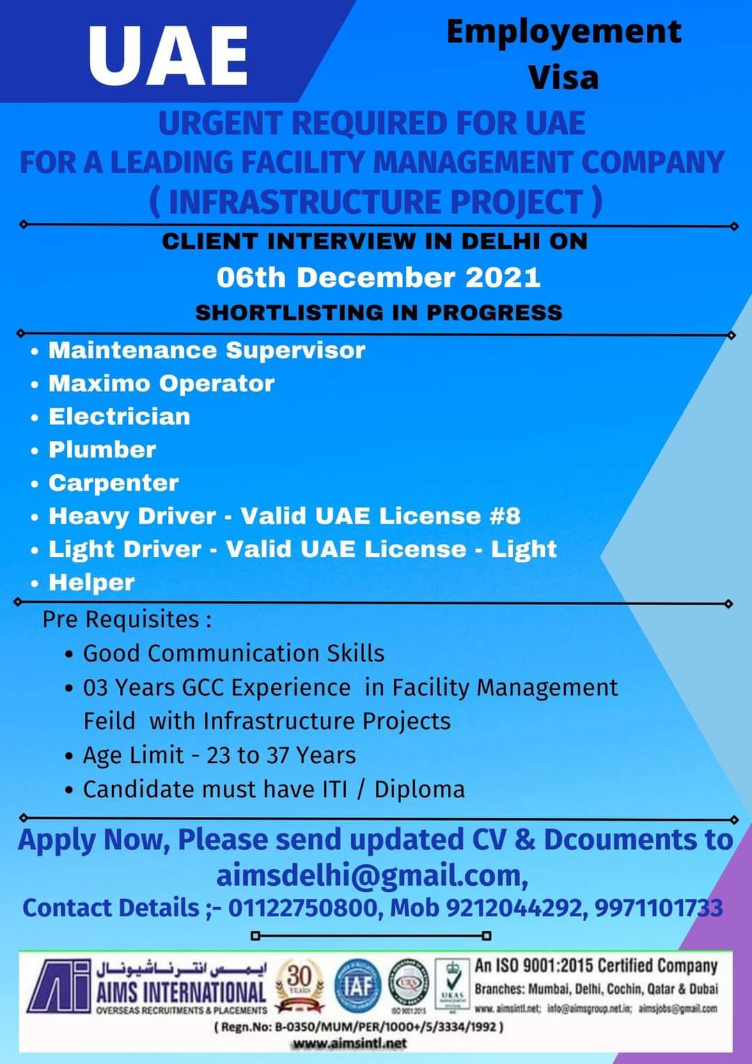 URGENT REQUIRED FOR UAE