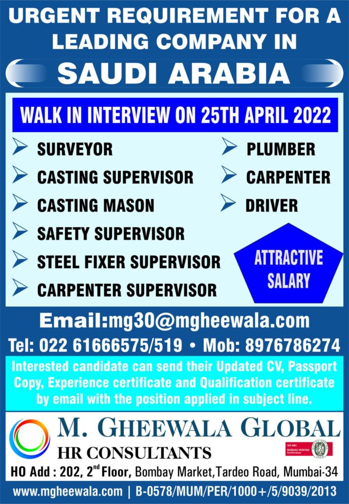 WALK IN INTERVIEW ON 25TH APRIL 2022