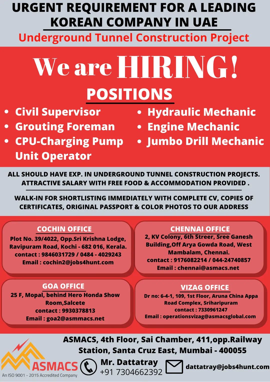 ALL SHOULD HAVE EXP. IN UNDERGROUND TUNNEL CONSTRUCTION PROJECTS.