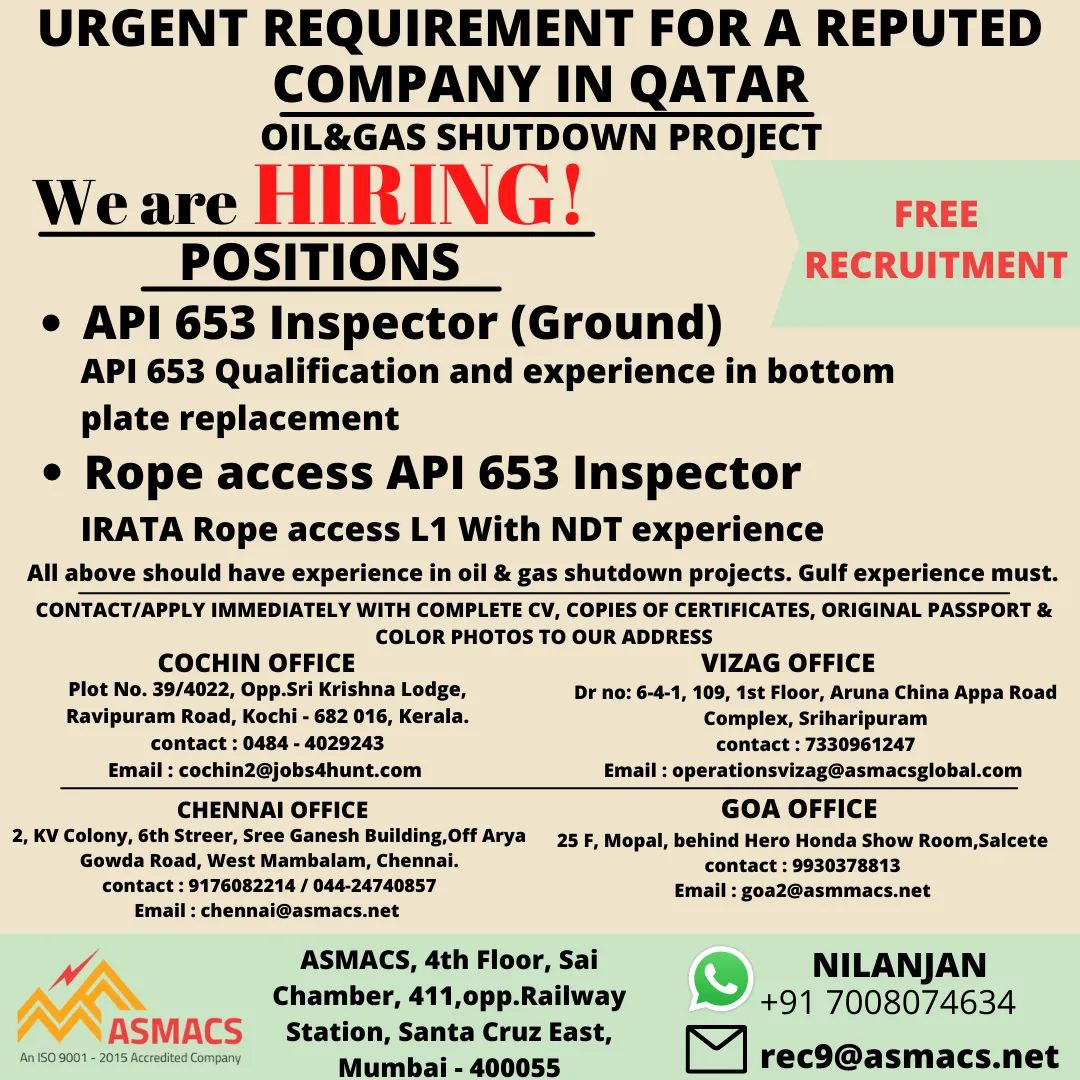 All above should have experience in oil & gas shutdown projects. Gulf experience must.