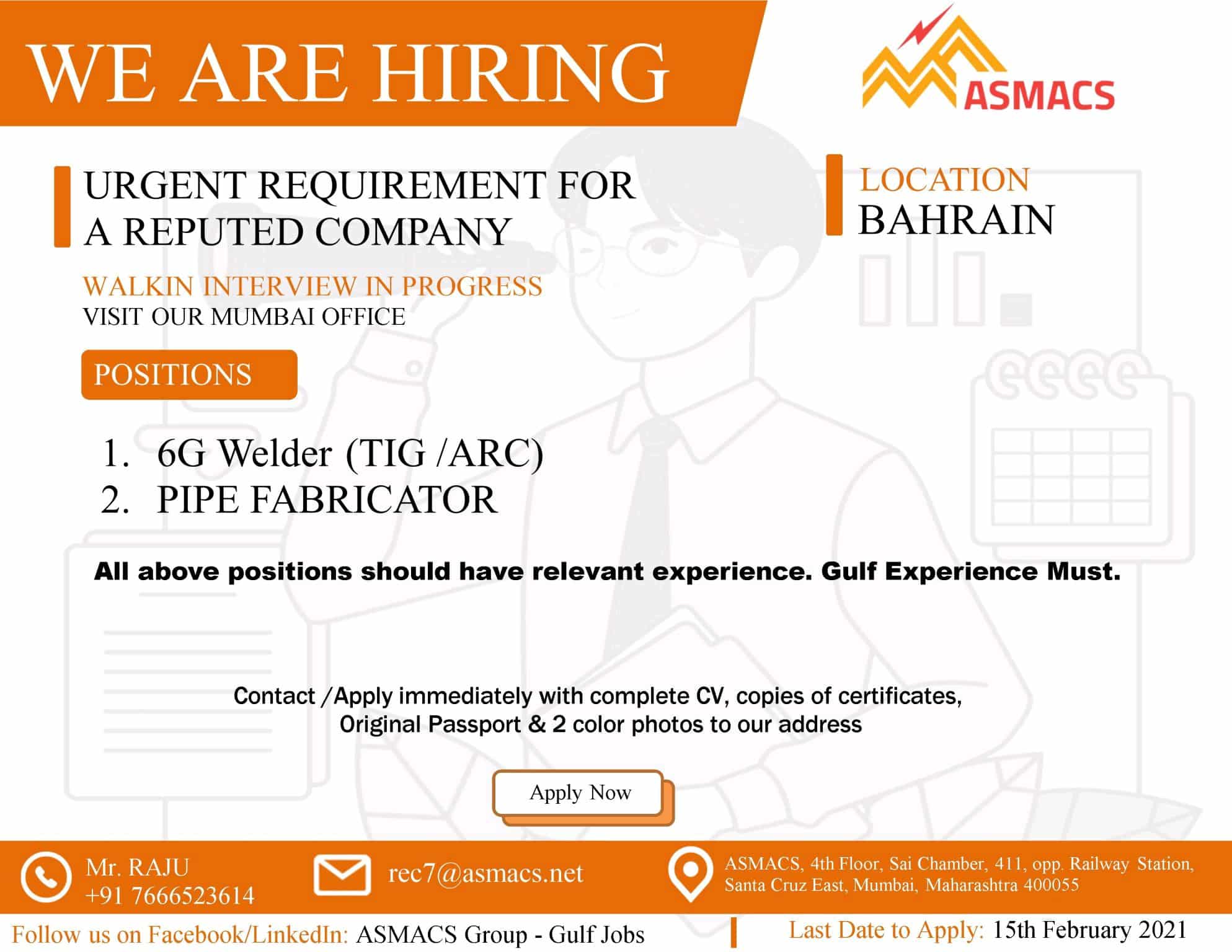 Follow us on Facebook/LinkedIn: ASMACS Group – Gulf Jobs