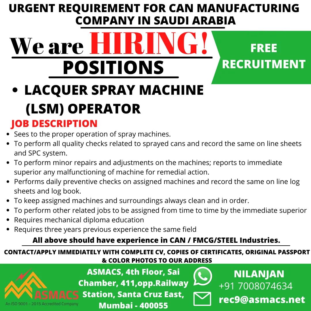URGENT REQUIREMENT FOR CAN MANUFACTURING