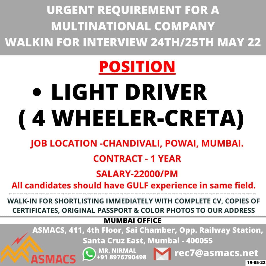 JOB LOCATION -CHANDIVALI, POWAI, MUMBAI.