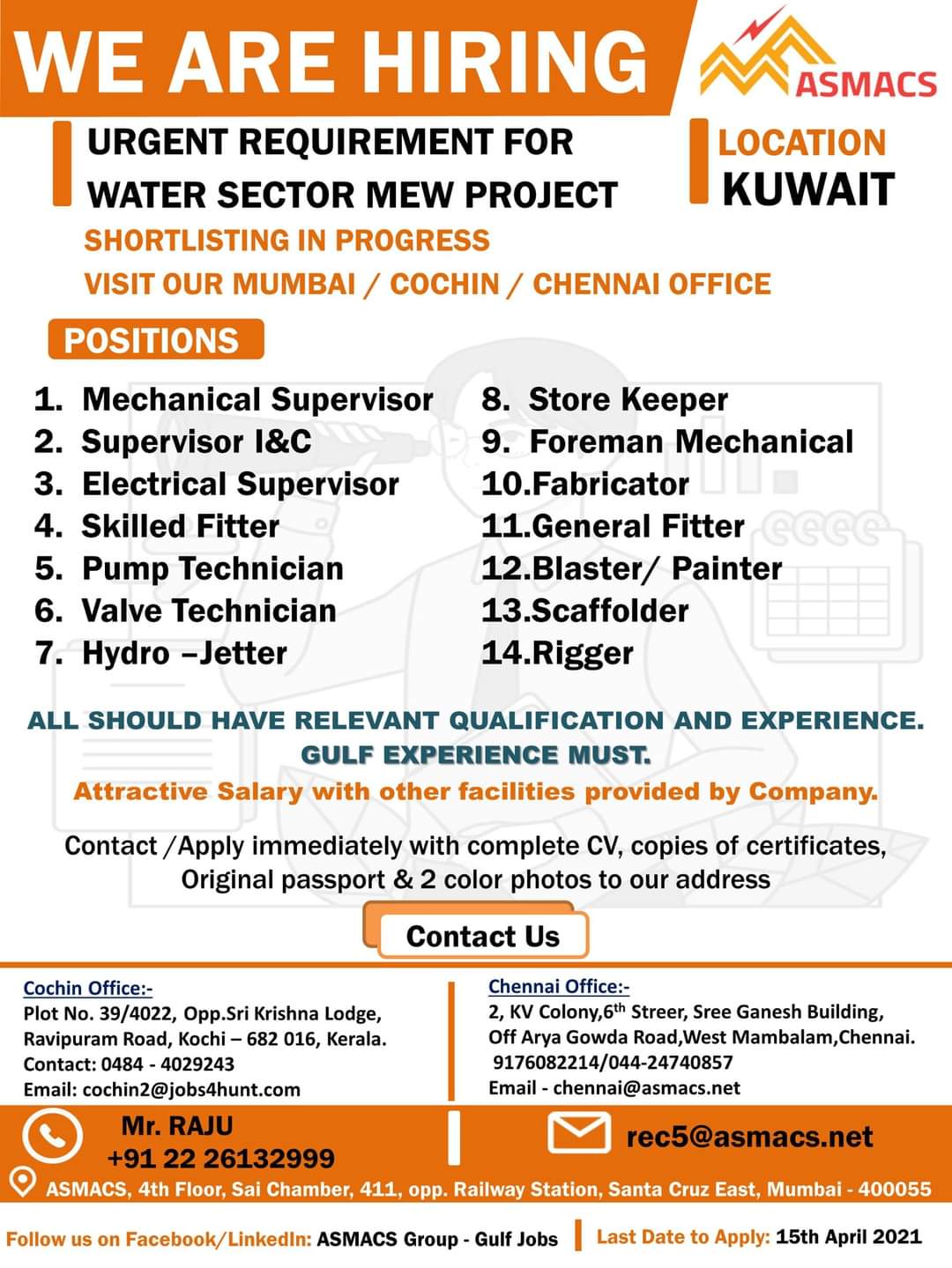 ALL SHOULD HAVE RELEVANT QUALIFICATION AND EXPERIENCE.