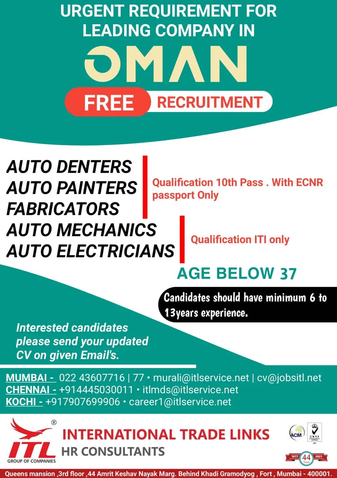 AUTO PAINTERS Qualification 10th Pass. With ECNR