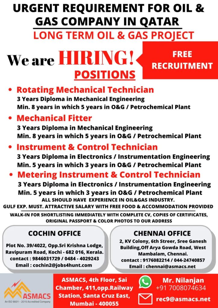 GULF EXP. MUST. ATTRACTIVE SALARY WITH FREE FOOD & ACCOMMODATION PROVIDED