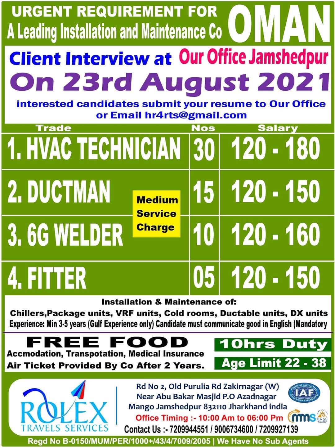Office Timing :- 10:00 Am to 06:00 Pm mms