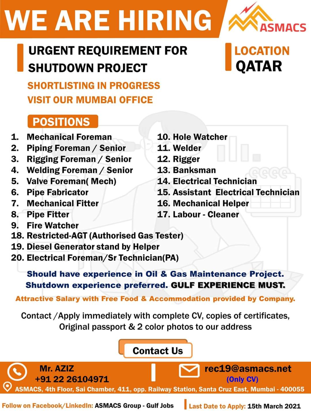 Shutdown experience preferred. GULF EXPERIENCE MUST.