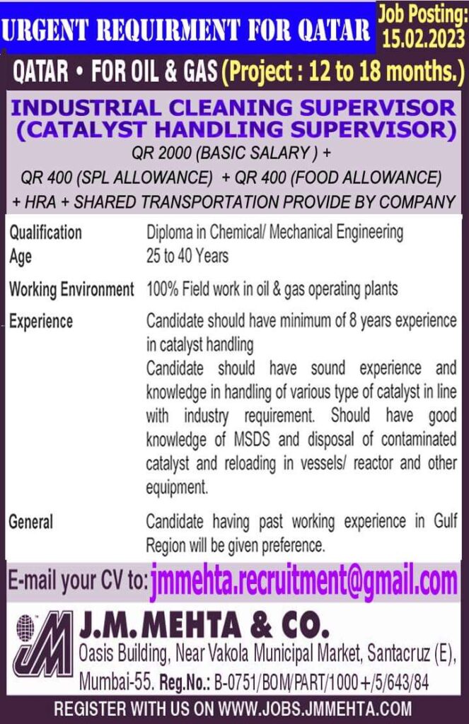 URGENT REQUIRMENT FOR QATAR 15.02.2023