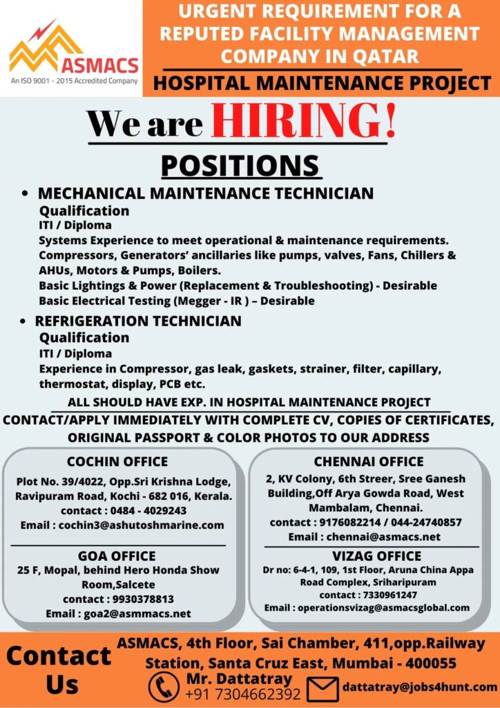 ALL SHOULD HAVE EXP. IN HOSPITAL MAINTENANCE PROJECT