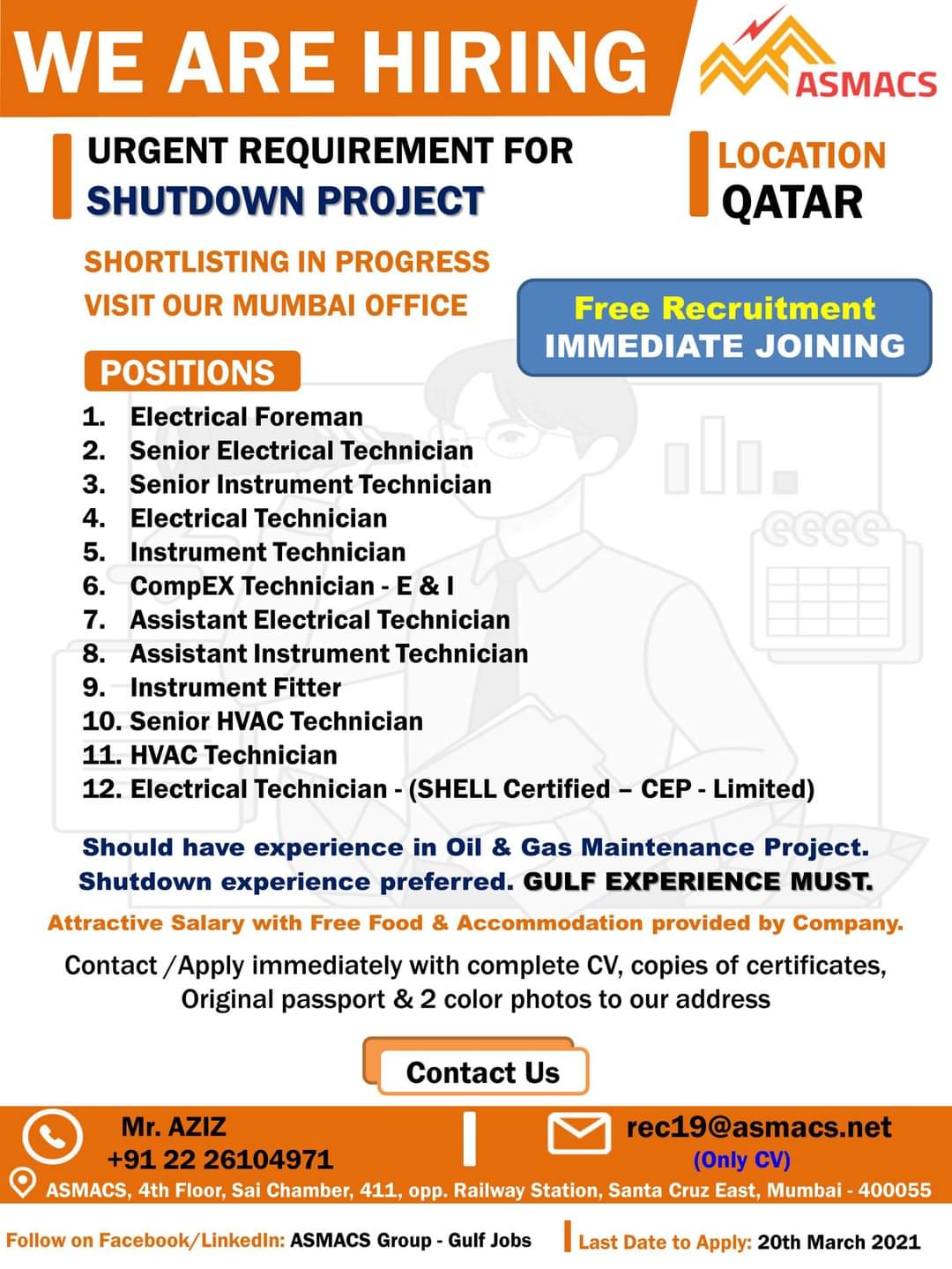Shutdown experience preferred. GULF EXPERIENCE MUST.