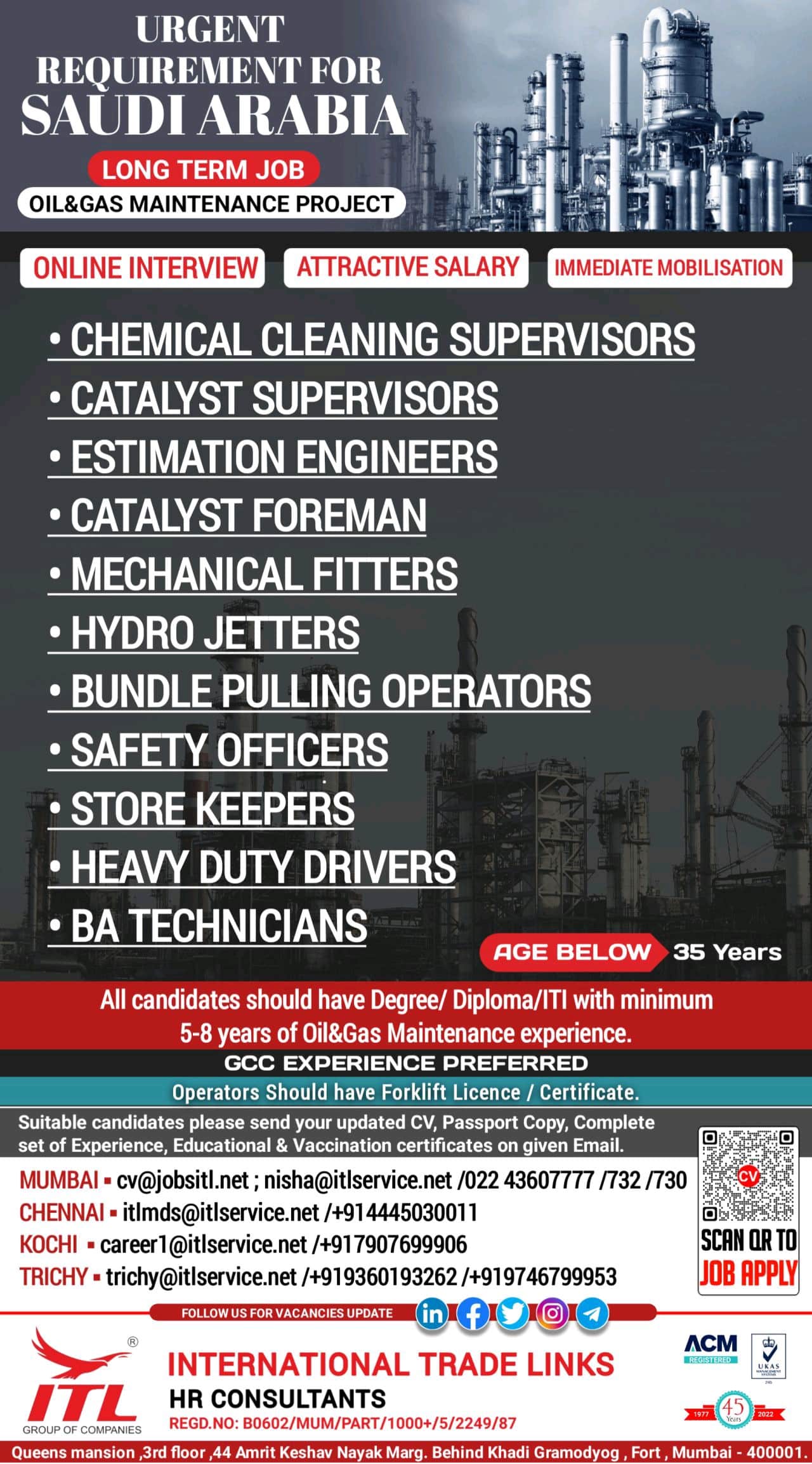 ONLINE INTERVIEW ATTRACTIVE SALARY IMMEDIATE MOBILIZATION