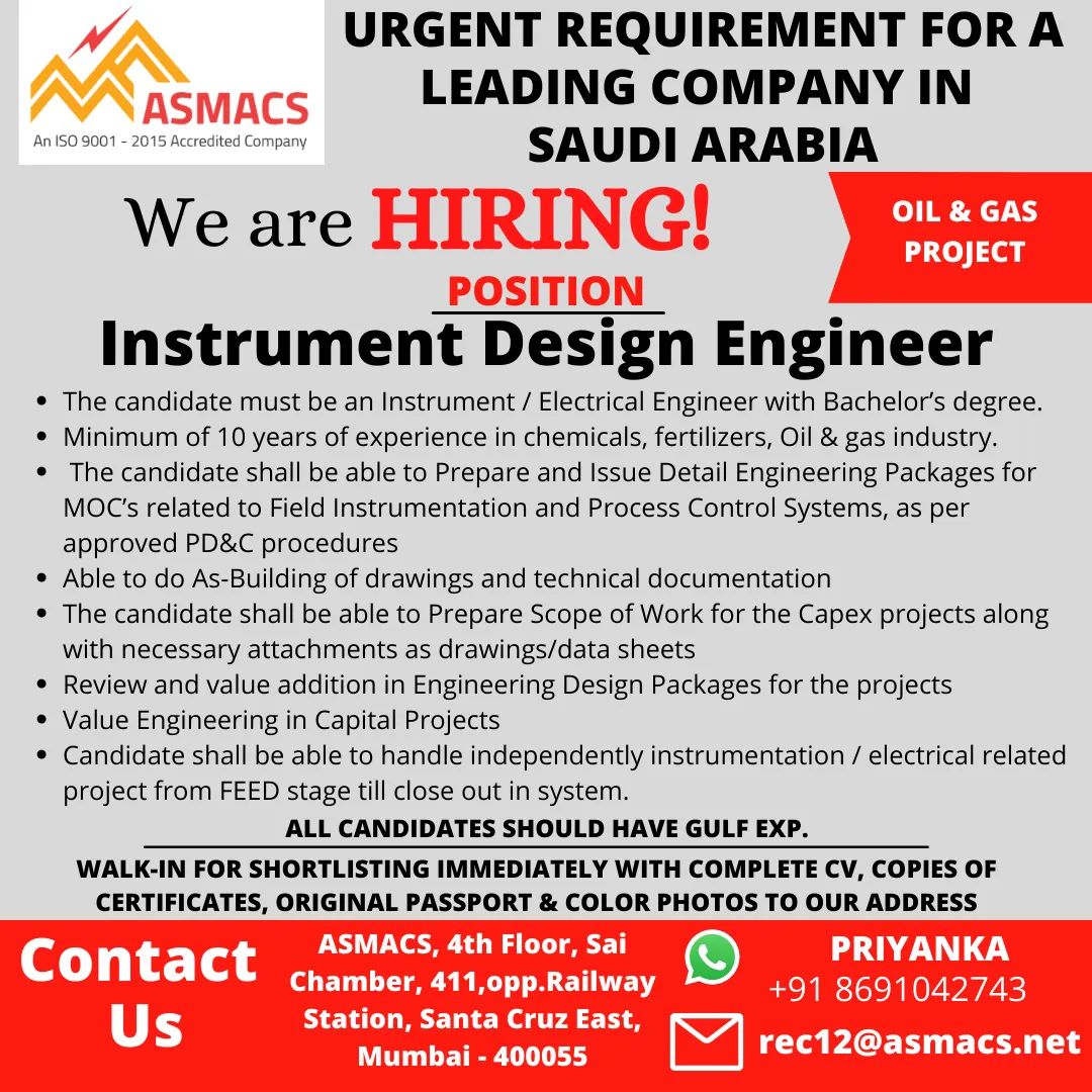 • The candidate must be an Instrument / Electrical Engineer with Bachelor’s degree.