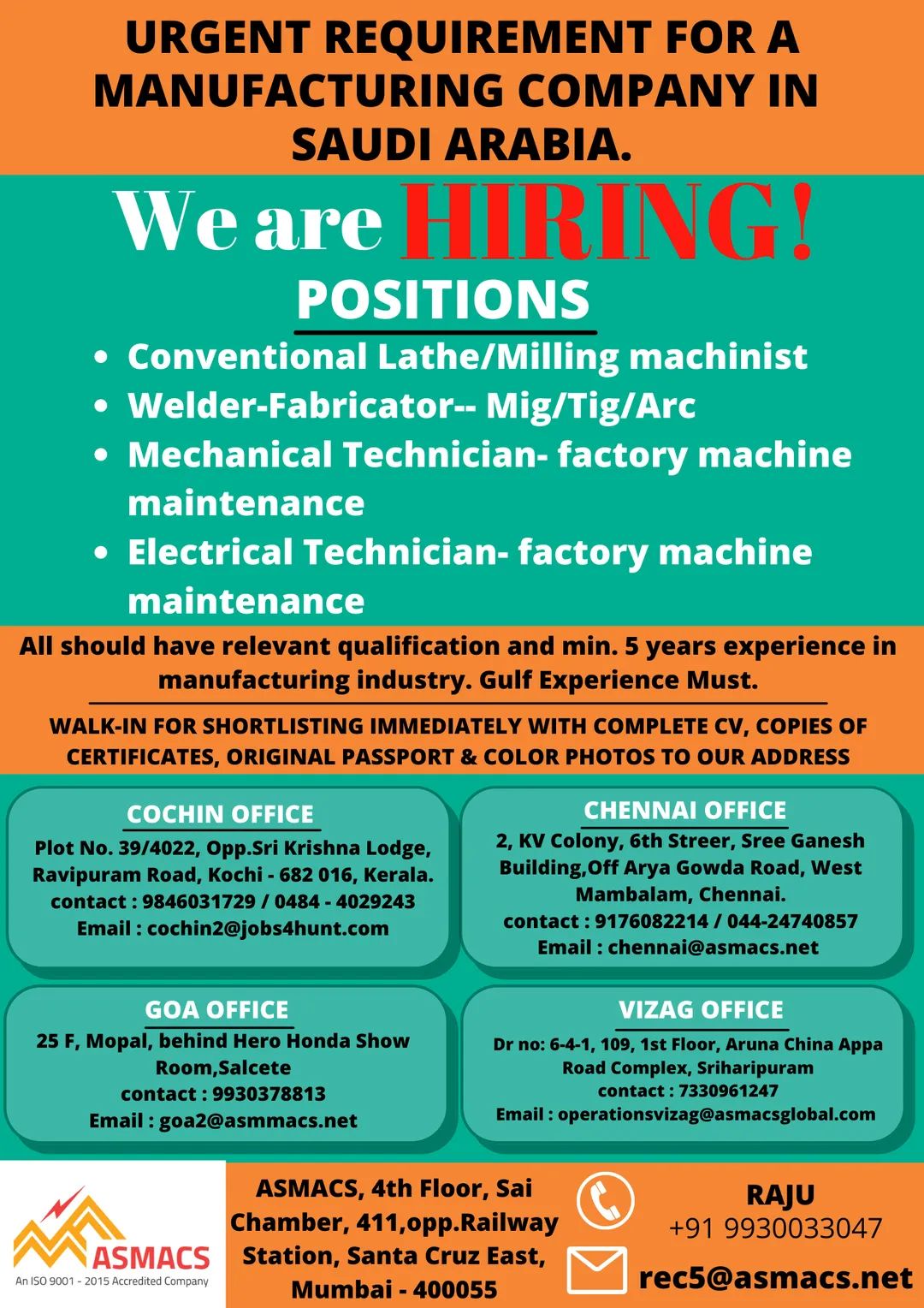 manufacturing industry. Gulf Experience Must.