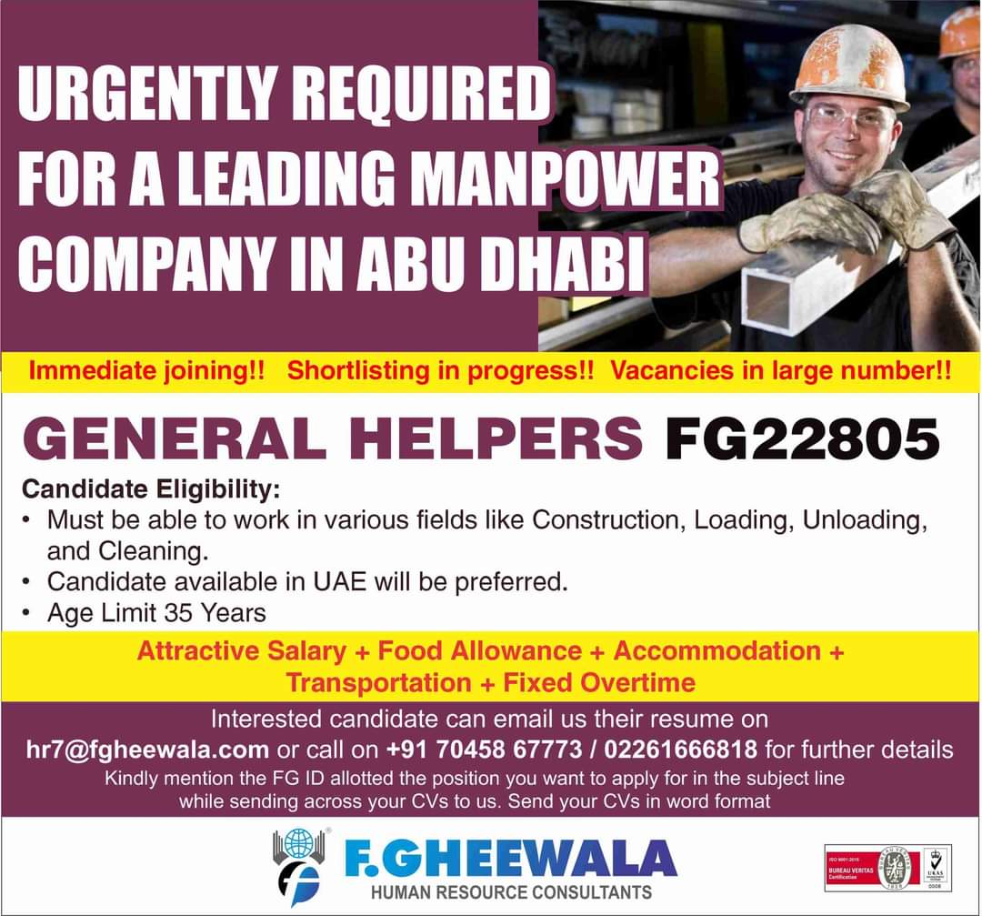 URGENTLY FOR A LEADING MANPOWER
