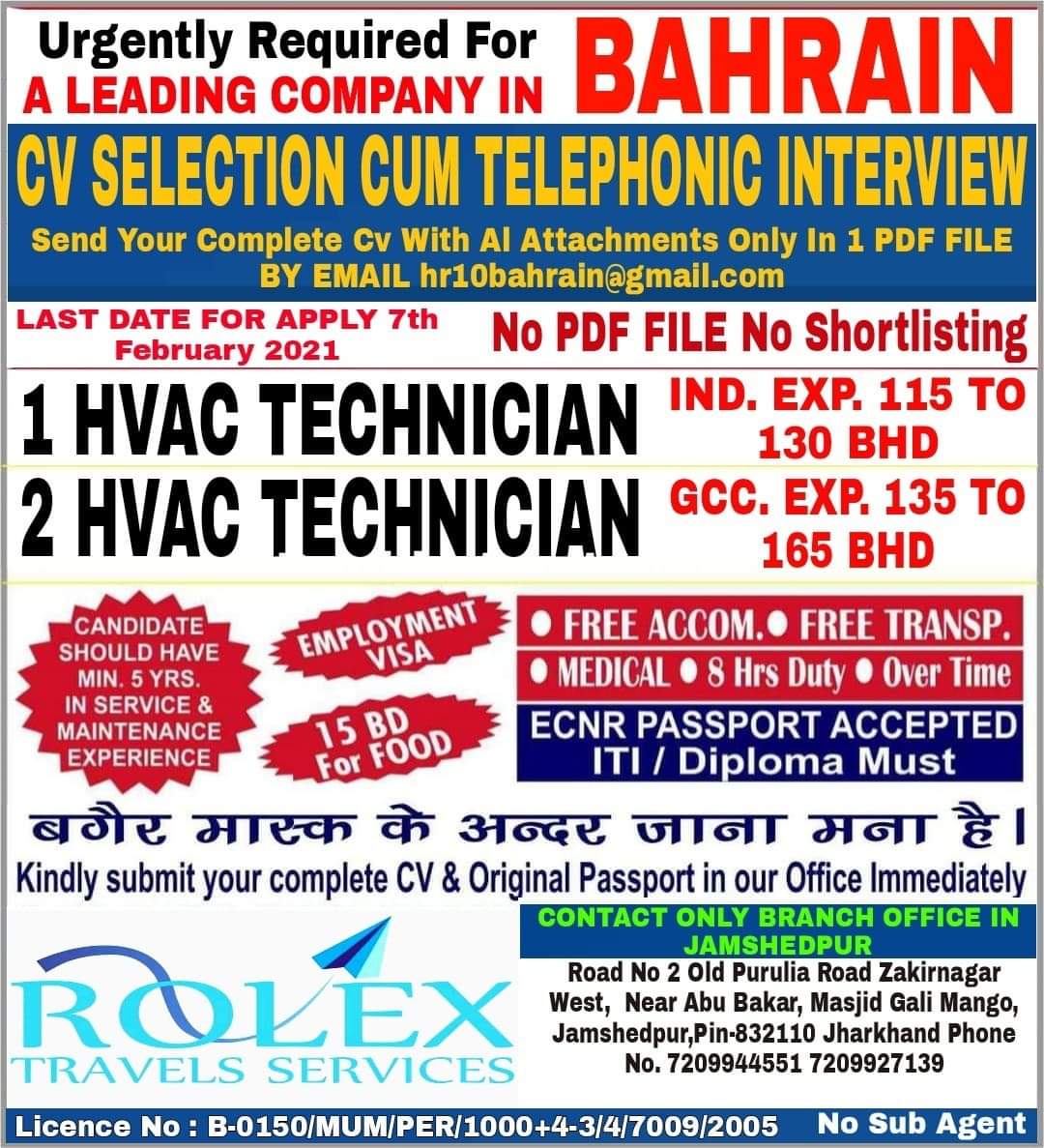Kindly submit your complete CV & Original Passport in our Office Immediately