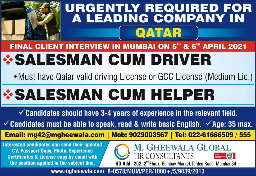 •Must have Qatar valid driving License or GCC License (Medium Lic.)