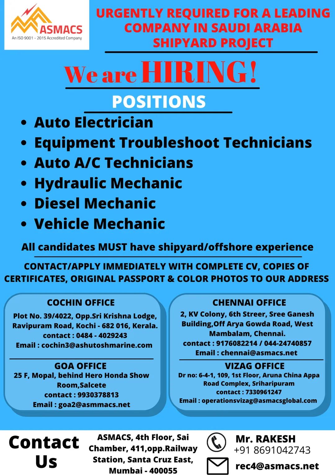 All candidates MUST have shipyard/offshore experience
