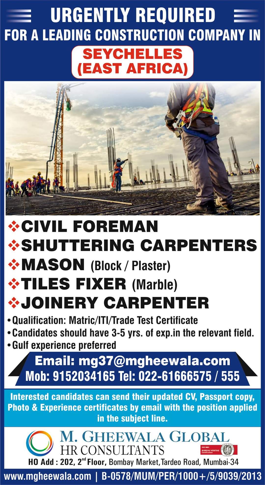 Interested candidates can send their updated CV, Passport copy,