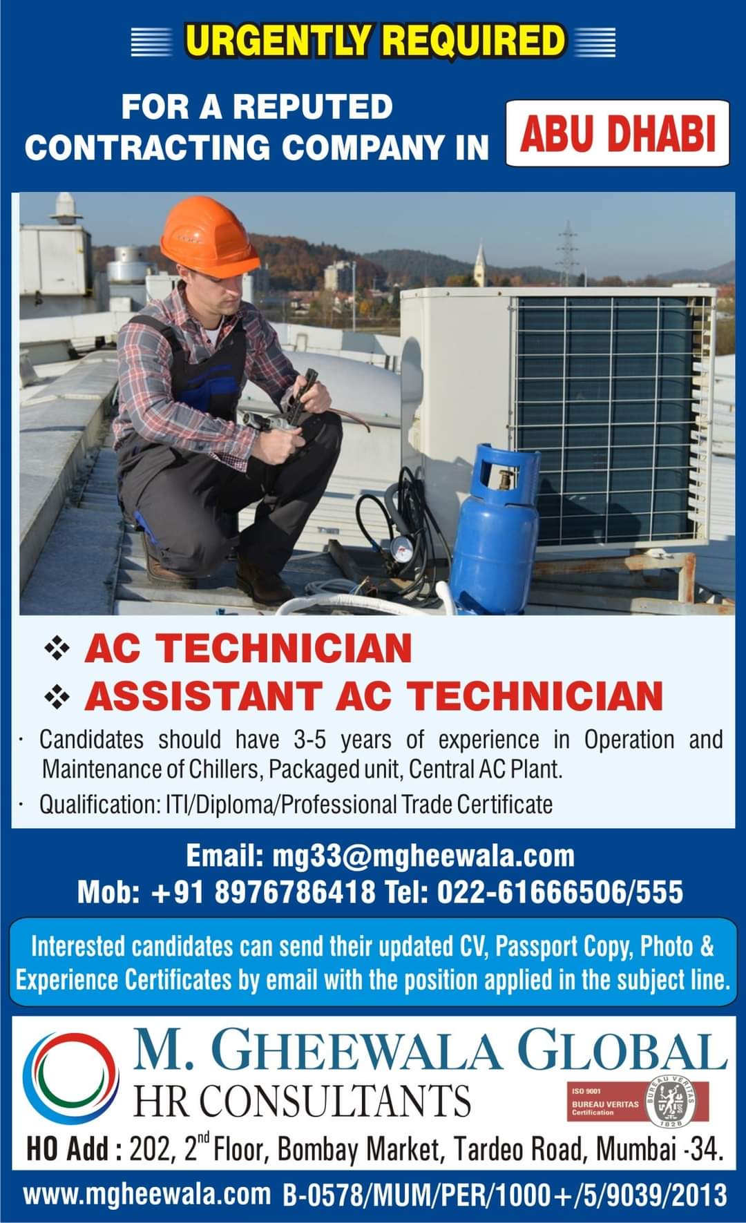 Maintenance of Chillers, Packaged unit, Central AC Plant.