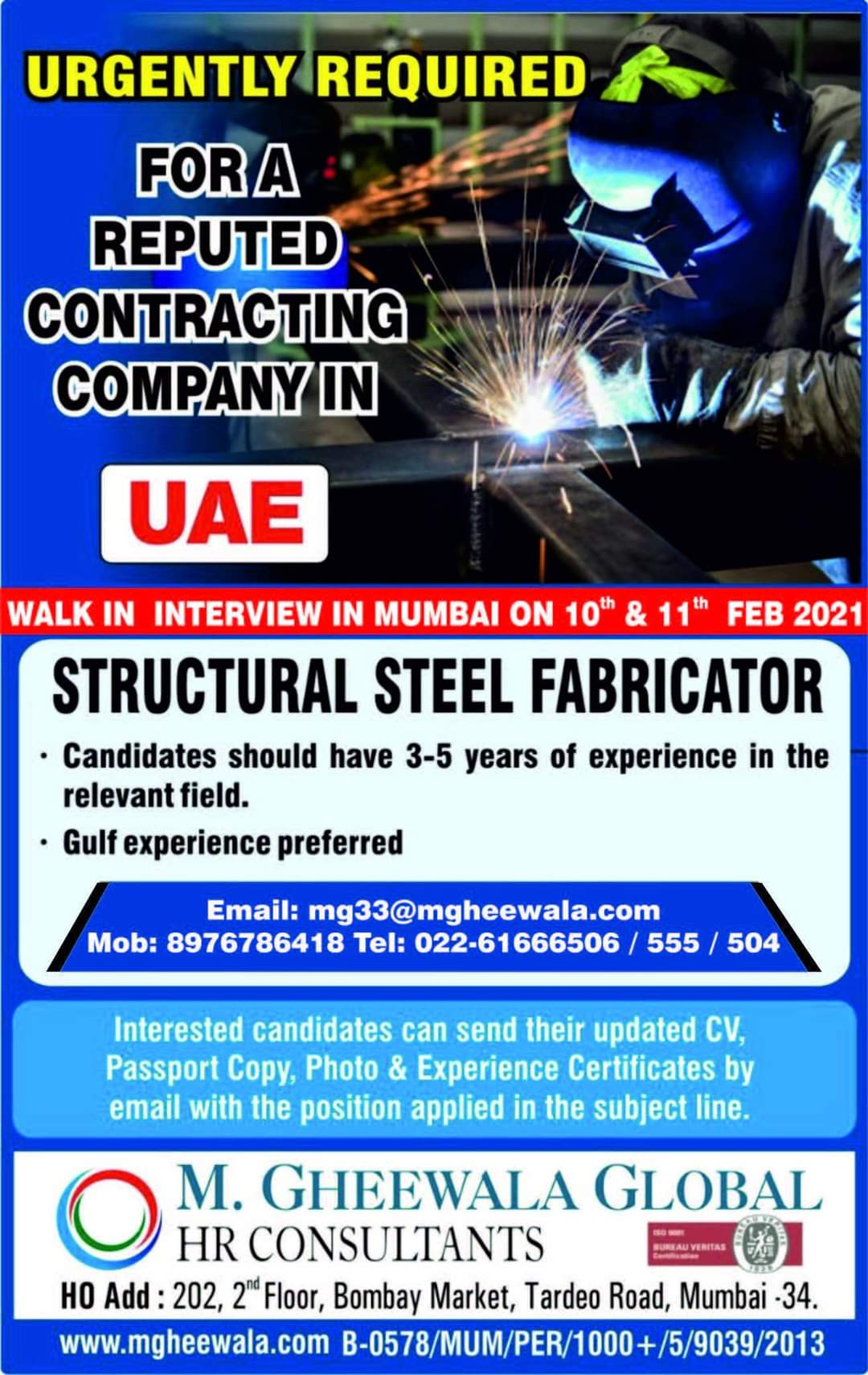 WALK IN INTERVIEW IN MUMBAI ON 10th & 11th FEB 2021