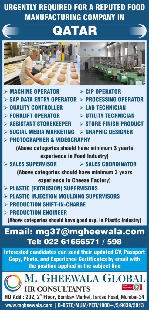 URGENTLY REQUIRED FOR A REPUTED FOOD