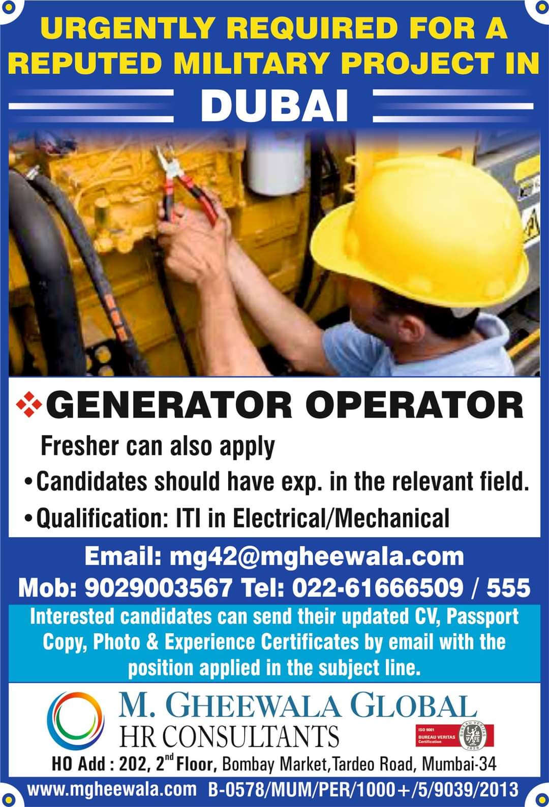 •Qualification: ITI in Electrical/MechanicaI